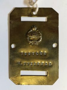 Brass plaque displaying Twissell’s name and service no.